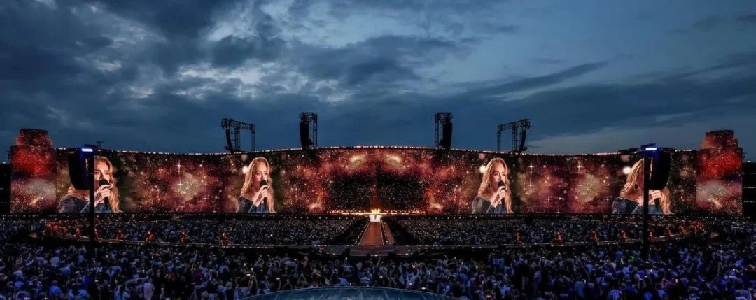 2024年,洲明集团旗下雷迪奥为阿黛尔(Adele)慕尼黑演唱会打造220米长、30米高的LED舞台大屏,作为“史上最大户外屏幕”载入吉尼斯世界纪录。